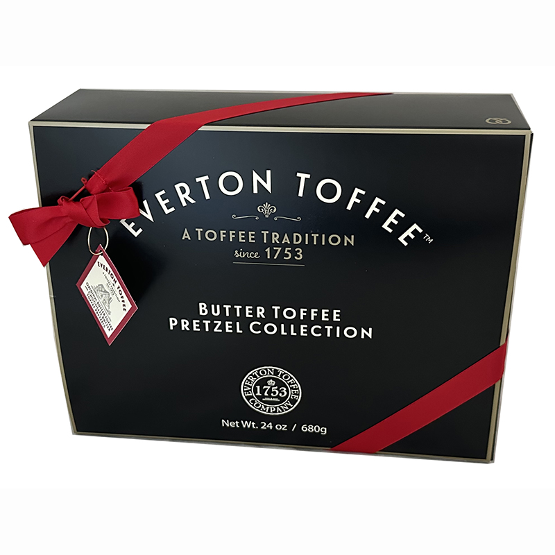 $12.00 | Tell a friend | Print Code: E742 | Brands : Everton Toffee Co. Bags Shipping Weight 30.00 OZ Case Pack 6.0000 Dimensions 9 ¼ x 7 ¼ x 2 ¾ Size 24 oz Color Black Maximum Shelf Life 9 - 12 Months Made in: California Combo of Original Butter Toffee Pretzels and Chocolate covered Butter Toffee Pretzels Qty: